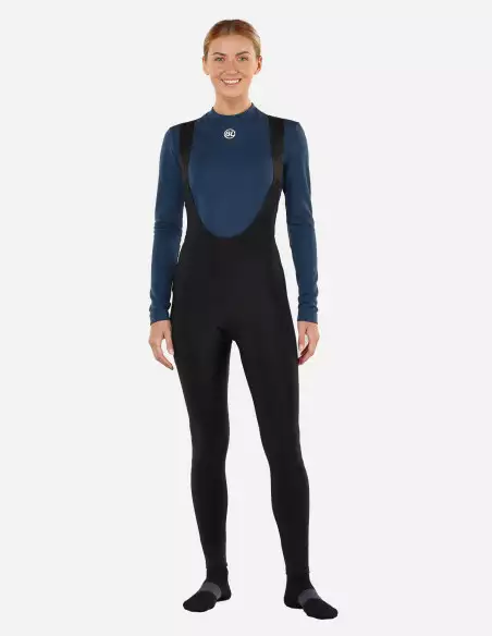 Culotte largo premium para mujeres ciclistas realizado en tejido Superroubaix DWR “Full Black” térmico y repelente al agua y badana Elastic Interface para distancias extralargas. Excelente calida...