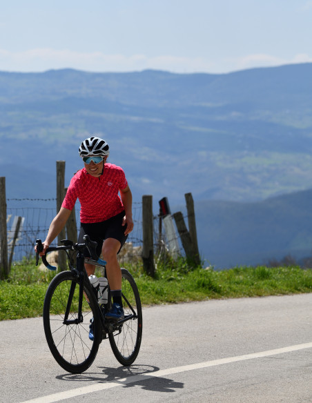 - Tissu élastique et aérodynamique sur les manches avec silicone antidérapant sur le bas.