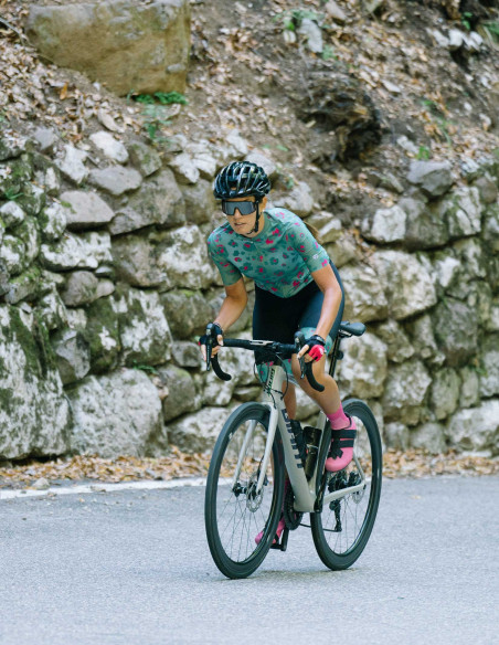 Bellissima maglia da ciclismo per donna, morbida e fresca per le pedalate estive. Realizzata con tessuti leggeri, comodi e molto traspiranti è perfetta per le temperature estive e abbinata al pant...